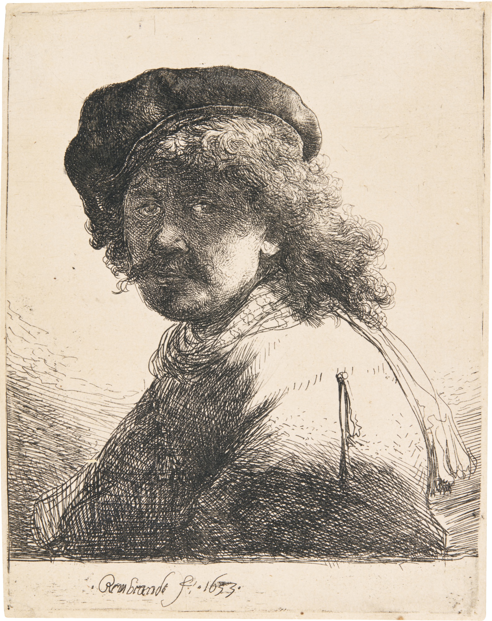 | SELF-PORTRAIT IN A CAP AND SCARF WITH FACE DARK: BUST (B., HOLL. 17; NEW HOLL. 120; H. 108) | |