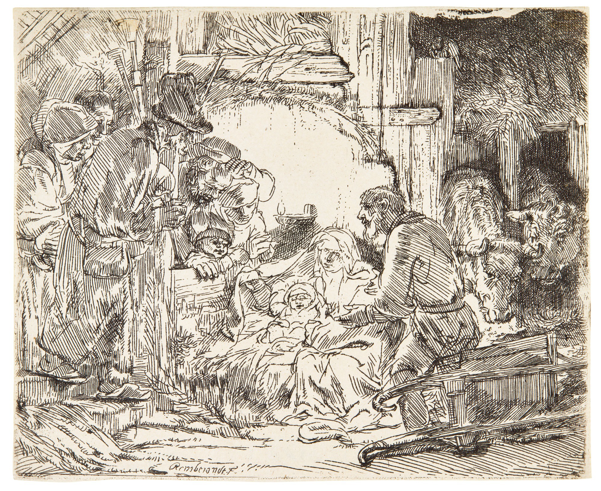 | THE ADORATION OF THE SHEPHERDS: WITH THE LAMP (B., HOLL. 45; NEW HOLL. 279; H. 273) | |