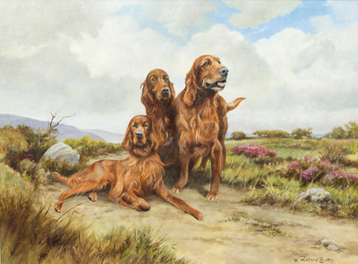 Irish Setters in a Moorland Landscape