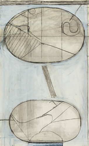 Acrylic pastel and charcoal on 2 joined sheets of paper