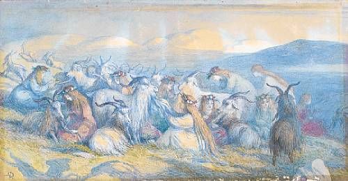 Young girls attending goats