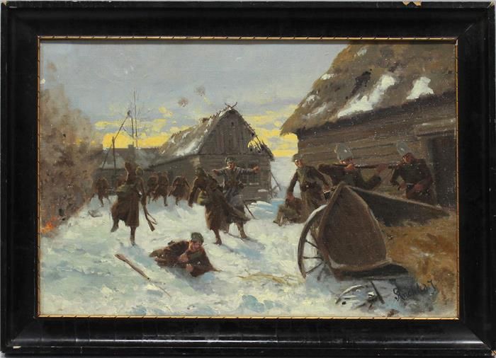 | WK mit deutschen und russischen Soldaten in verschneitem Dorf kämpfend | |