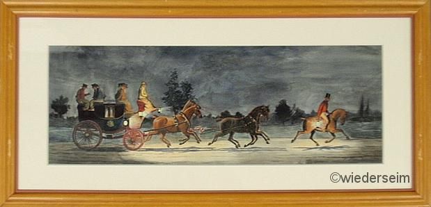 | a four-in-hand coach running at night with an advance rider with lantern | |