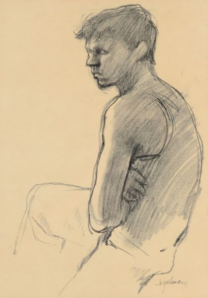 Drawing of a Young Boy Seated with Arms Folded