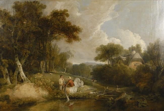 FIGURES IN A LANDSCAPE WITH COTTAGE