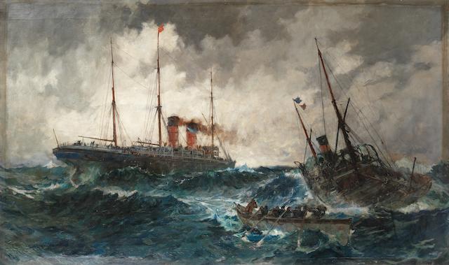 RMS Etruria rescuing the crew of the foundering SS Millfield, 10th December 1897