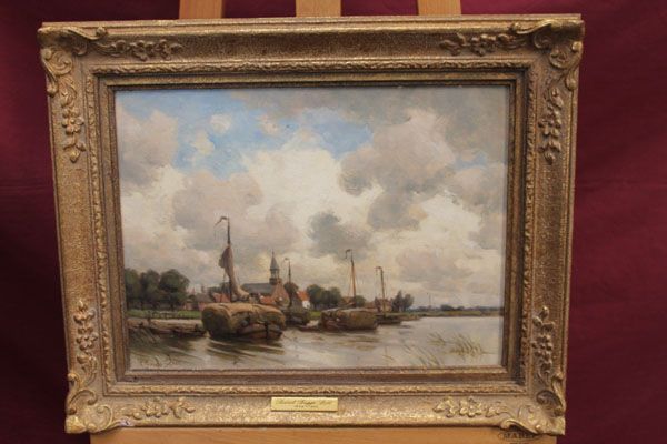 | Hay barges and the village church, Papendrecht, Holland, Cloudy Day | |