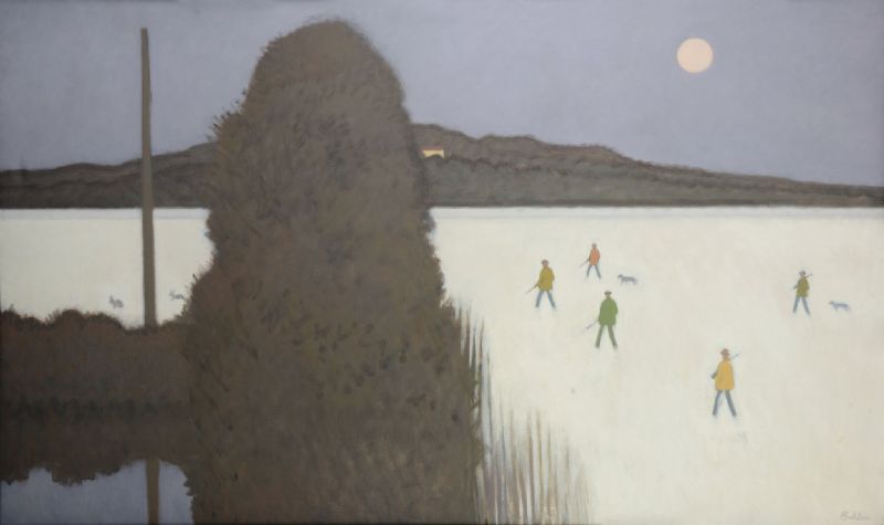Shooting party in a winter landscape