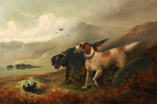 TWO RETRIEVERS AT WORK