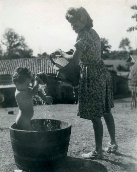 Femme et enfant au bain, vers 1950