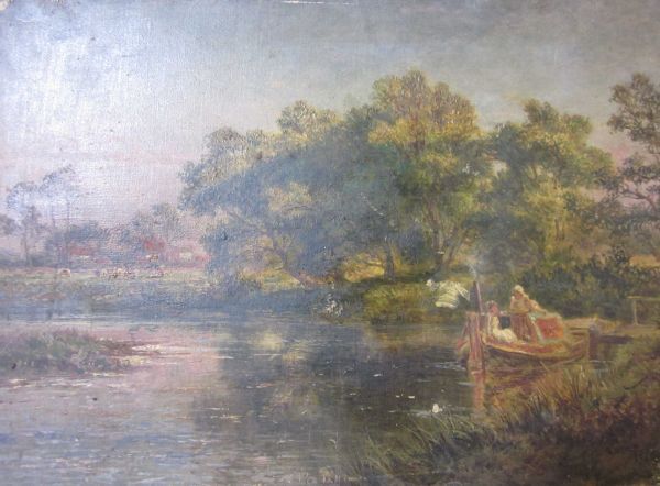 Figures on a barge