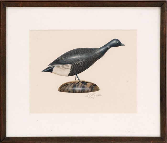 Portrait of a miniature brant carving by A. Elmer Crowell.