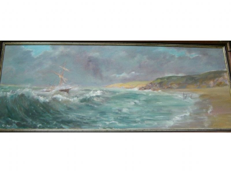 Sailing ship in distress off a Cornish Coast