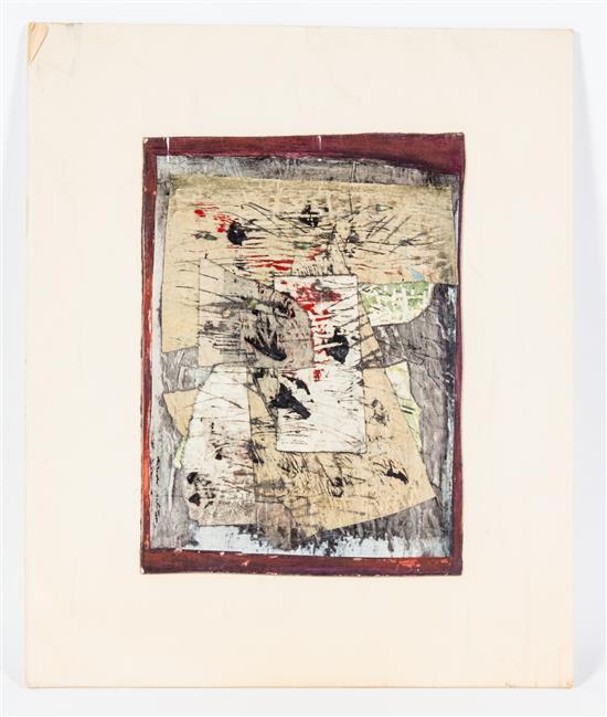 Oil and collage on cardboard mounted to board