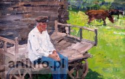 # SCENA WIEJSKA Z ODPOCZYWAJĄCYM CHŁOPEM I PASĄCYMI SIĄ KROWAMI