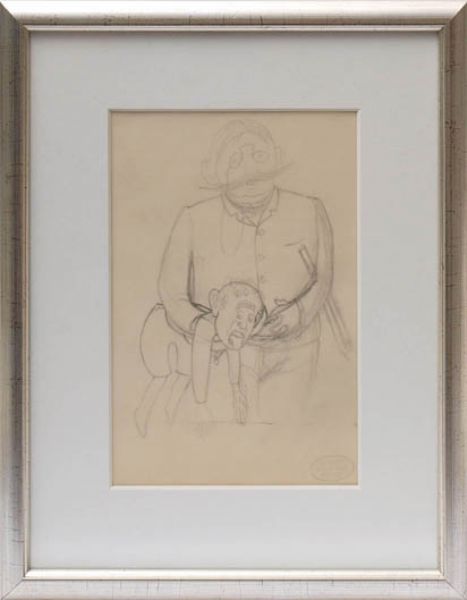 Satirical study of a teacher, a boy holding under his arm