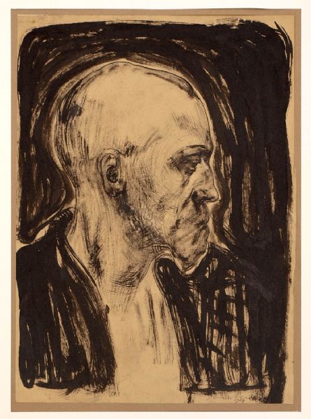 Brustbild eines älteren Mannes mit rasiertem Kopf.