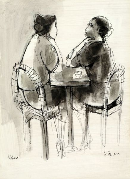 Women Chatting by a Table