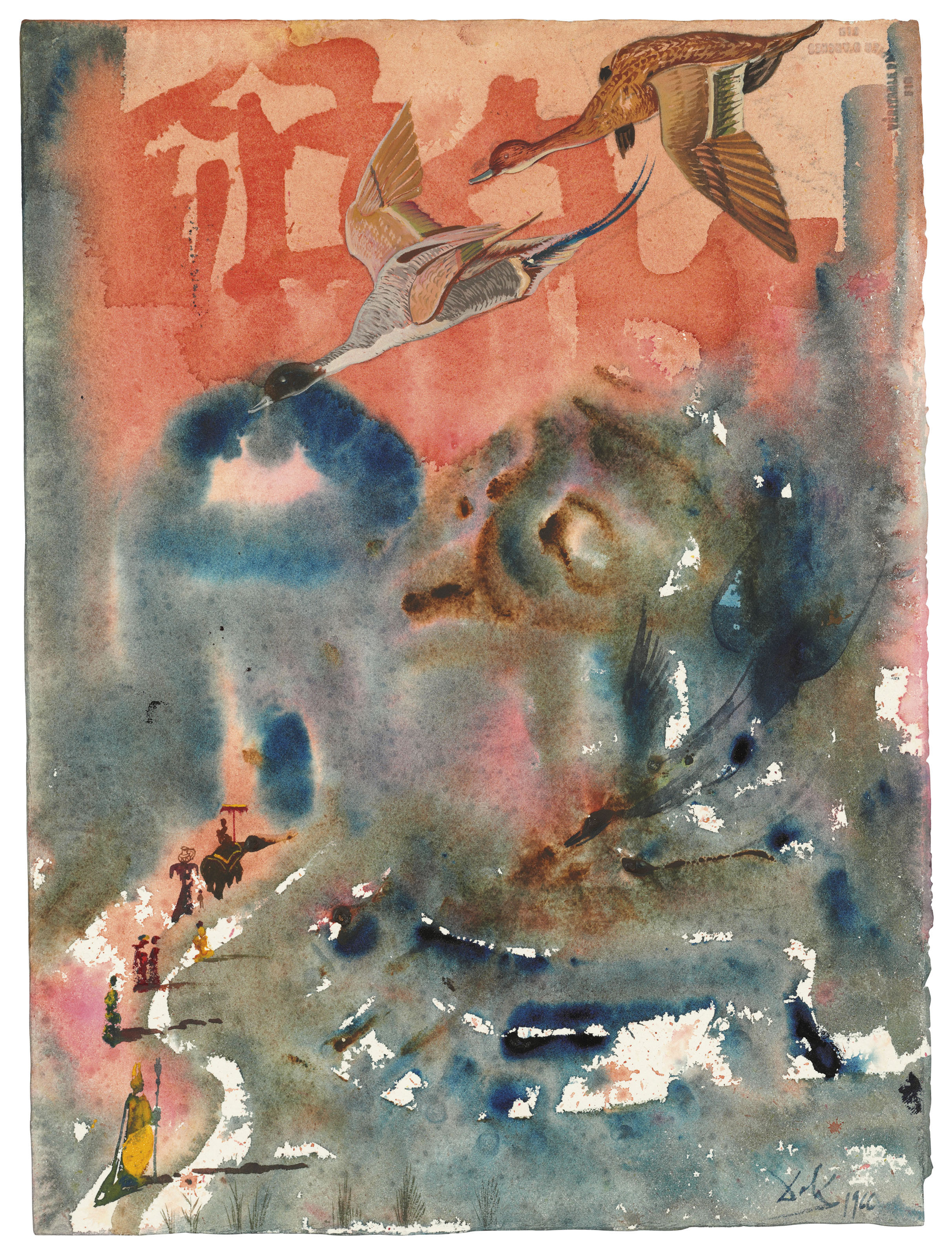 | Oil gouache, watercolour and brush and coloured ink on paper | |
