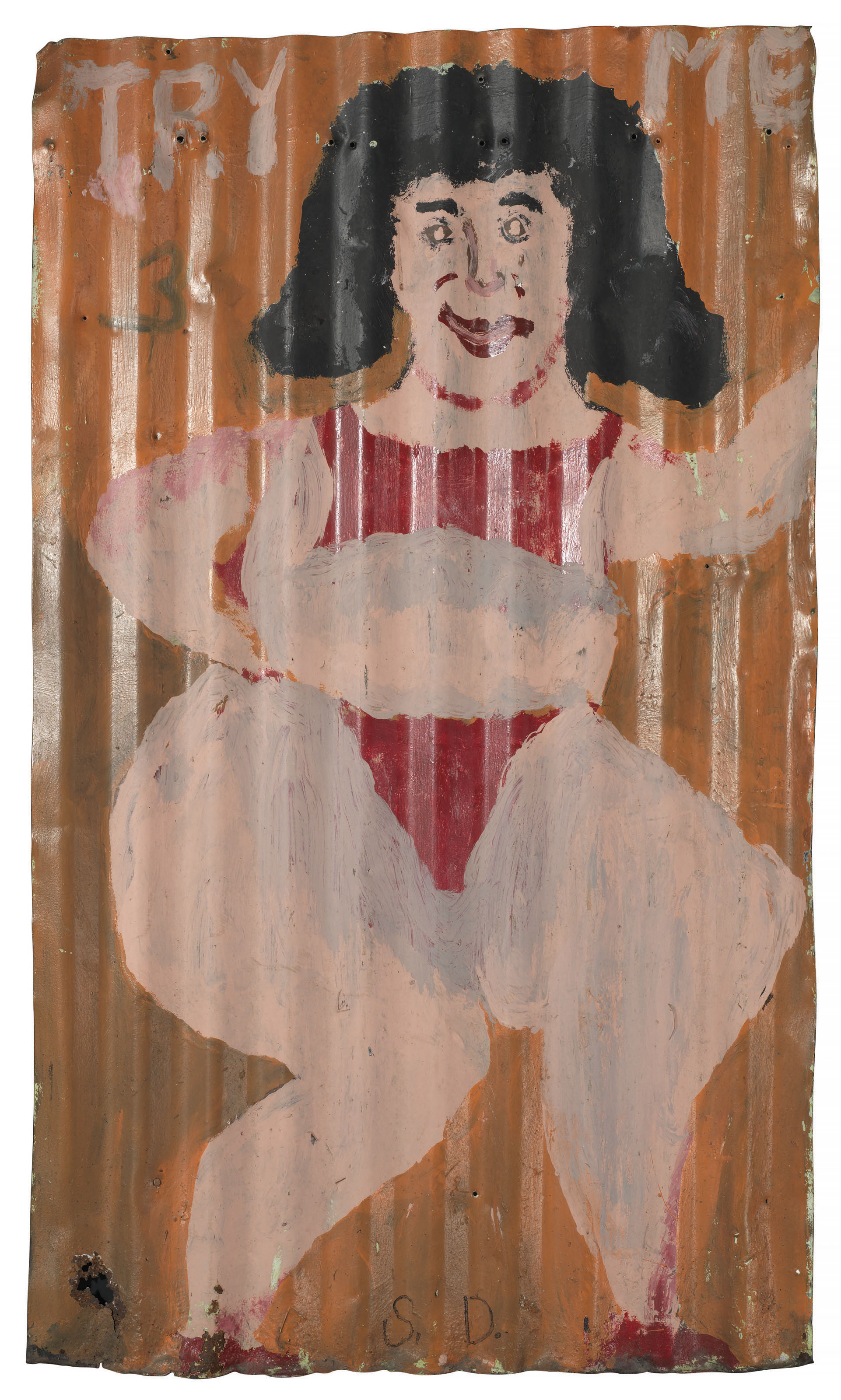 Enamel and ink on repurposed corrugated sheet metal