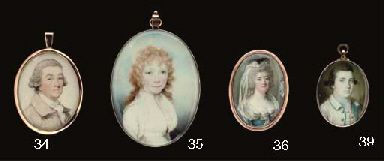 | A gentleman, in blue-bordered white coat and waistcoat, hair en queue | |