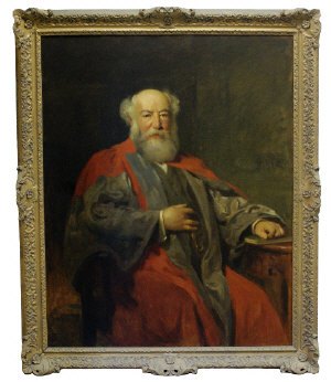 Sir Ludwig Mond, seated three-quarter length in red robes
