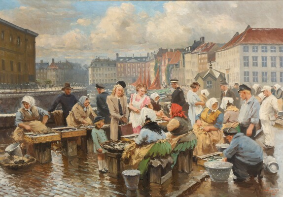 | A busy day at the fishmarket on Gl. Strand, Copenhagen | |
