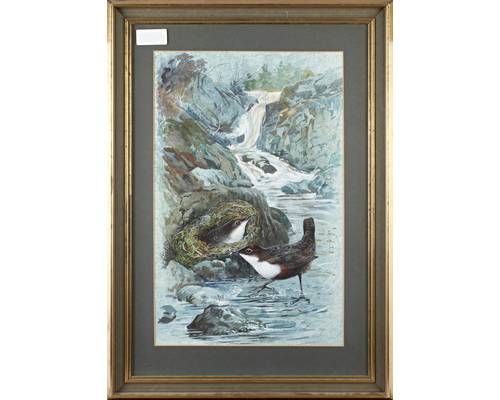 Nesting warblers by a rocky stream