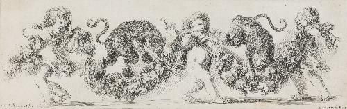 Aus: Ornamenti di fregi e fogliami (Zwei Titanen im Kampf mit Seeungeheuern / Drei Putti mit zwei Tigern)