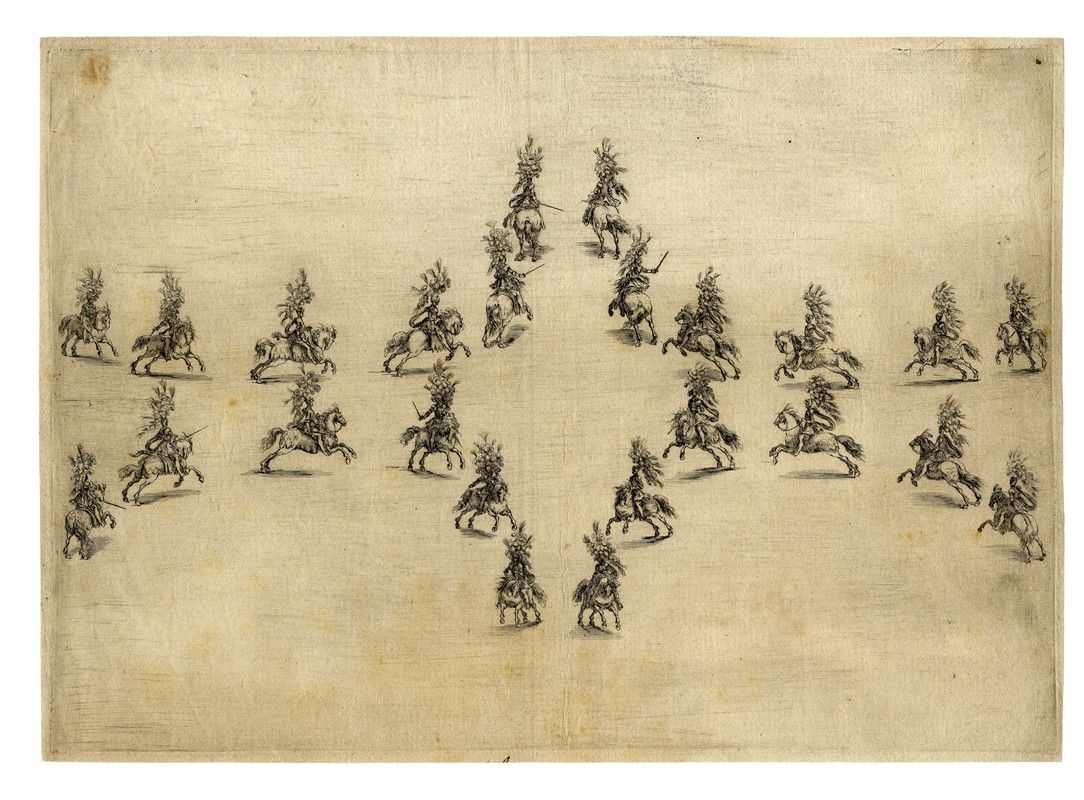 | Ventiquattro cavalieri su due file formano un ovale al centro. | |