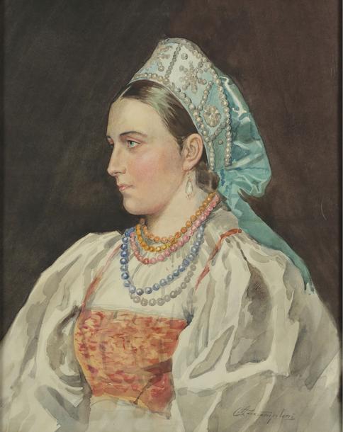 Femme russe en tenue traditionnelle, portant un kokochnik. | |