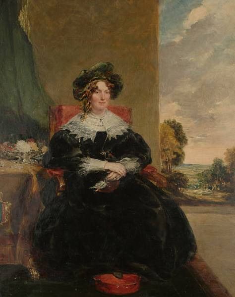 | Portrait of a seated lady wearing a black dress with a lace colour | |
