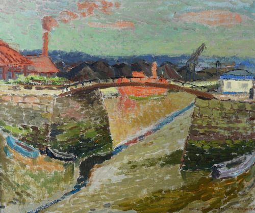 Byggnader och bro.