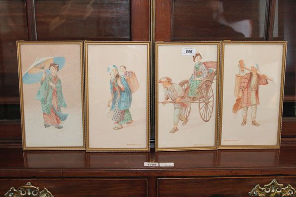 Lady with a parasol in snow, mother carrying baby, lady in a rickshaw and a male labourer