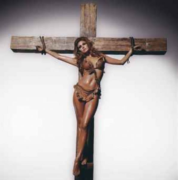 Raquel Welch on the cross