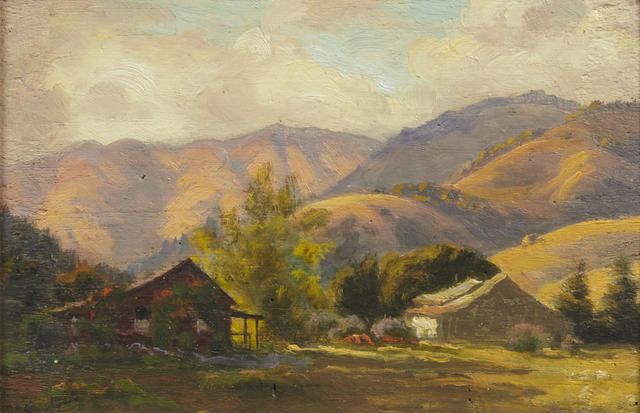 A California farm scene; A California landscape (painted on two sides of the same board)