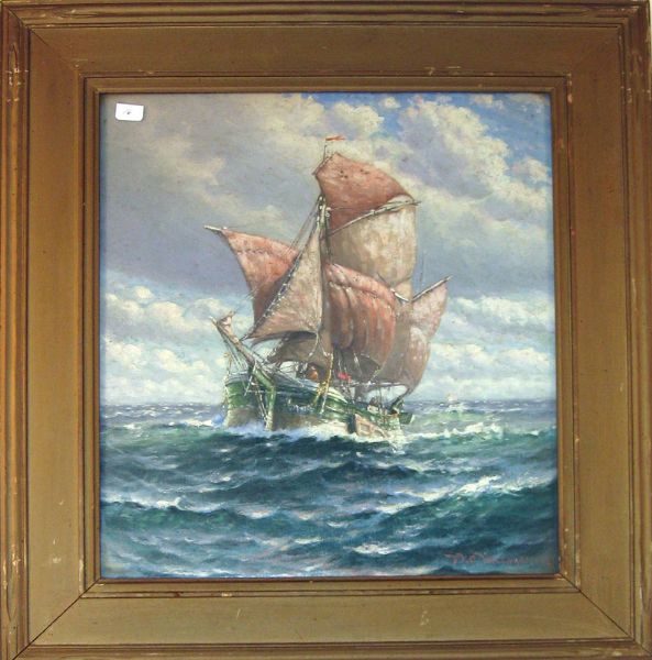 Marine scene with sailing ship