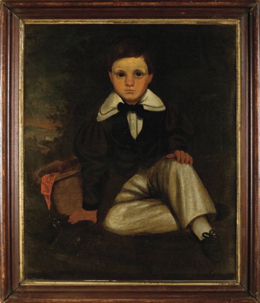 PORTRAIT OF A YOUNG BOY SEATED IN A LANDSCAPE