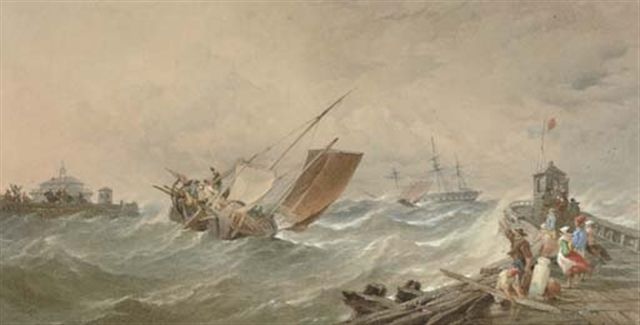 | A vessel in difficulty off Aber Sands, near Bangor, North Wales (illustrated); and Bringing in the day's catch | |