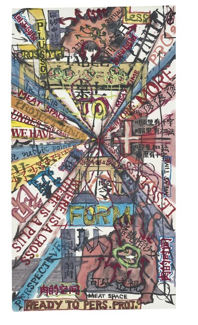 Acrylic oil and marker on paper mounted on paper