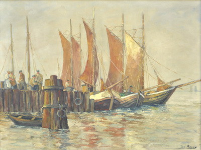 Fischer with Zeesbooten in the harbor Neuendorf (Hiddensee).