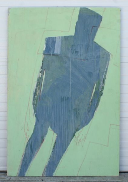 Woden man Blue man on green