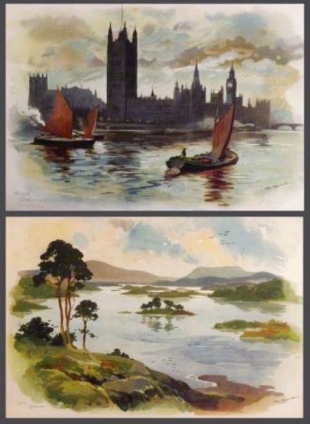 Loch Lomond; "Edinburgh Castle"; "Houses of Parliament from The River" and "Lakes of Killarney"