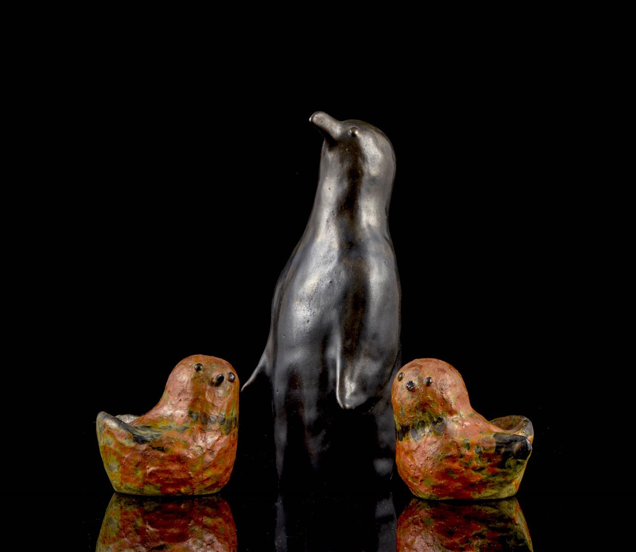 a brown glazed ceramic penguin