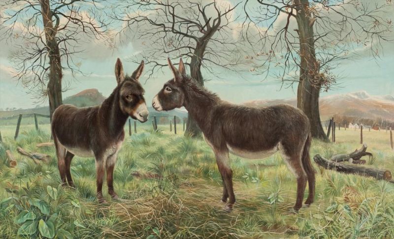 DONKEYS IN AN AUTUMN LANDSCAPE