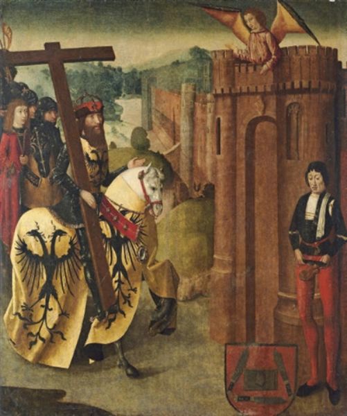 | The Emperor Heraclius bearing the True Cross denied entry to Jerusalem | |