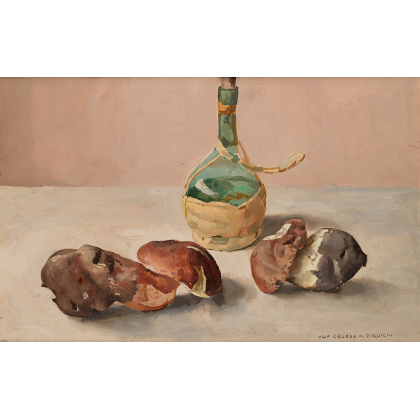 | Composizione con fiasco e funghi | |