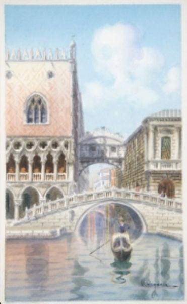 Blick auf die Seufzerbrücke und den Rio di Palazzo mit Gondoliere