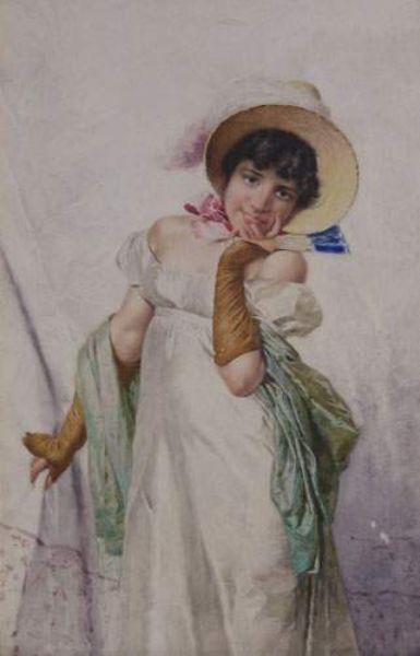 Portrait d'une fillette à l'étole de soie verte et à l'éventail