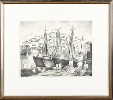 "In Port," ca. 1938 and "Inner Harbor,""Mending the Nets,"
